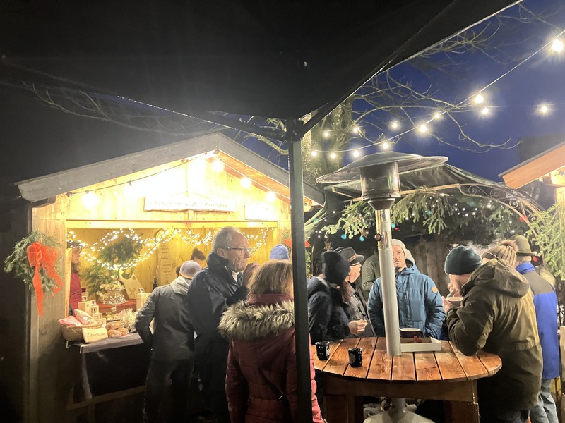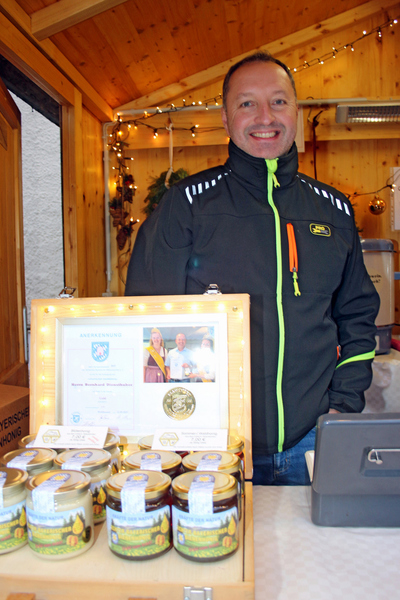 Das kulinarische Angebot, dass für jeden Gaumen etwas bot, reichte von Asiatischen Nudelgerichten über Chili, heiße Maronen, gebrannten Mandeln bis zu herzhaften süßen Zimtsternen. Der Renner war auch heuer die Bosna. Wobei die Wurst auf Holzkohle gegrillt wurde. Die Soße wird von den "Grillfreunden" selbst kreiert und sogar für die Auswahl der Brötchen gab es im vor hinein eine extra Verköstigung. Rund 1000 Bosnas gingen so an beiden Tagen über die Verkaufstheke. Natürlich war auch das Angebot an verschiedenen Getränkekreationen wieder recht breit gefächert. Vom einfachen Punsch und Glühwein, bis zum Hot Aperol und Heiße Schokolade mit oder ohne Schuss, verschiedene Schnäpse, und Cocktails bis zum FC Bayern Trunk war ziemlich jede Geschmacksrichtung vertreten. Zudem boten die Fieranten mit Weihnachtsgebäck, Geräuchertes, Honig, verschiedene weihnachtliche Holzdekos und weitere Holzwaren, Angebote für Körper und Gesundheit bis zu sehr schön gebastelten Dekos vom St.-Vitus Kindergarten ein reichhaltiges Angebot.